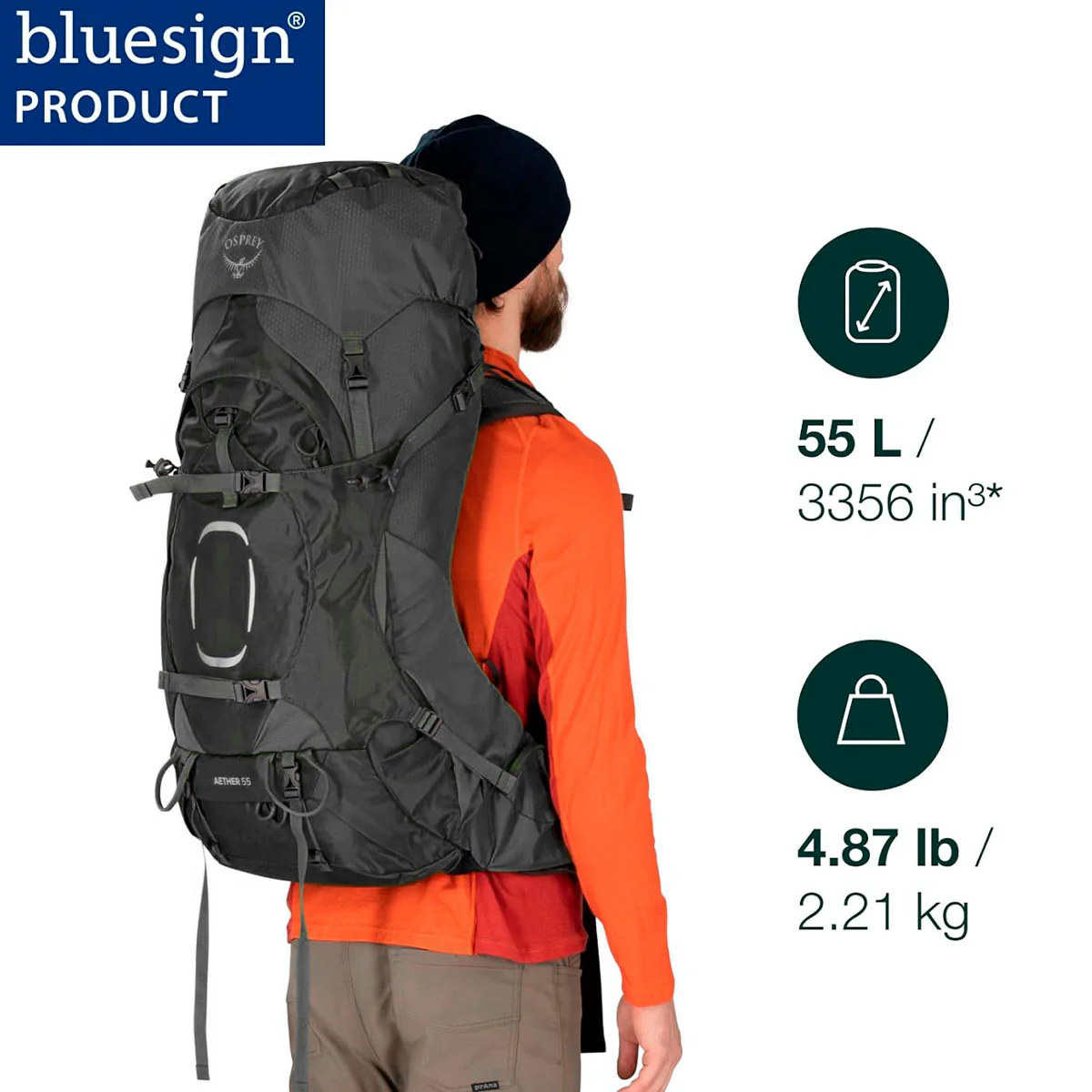 Ganadora del premio Editors’ Choice Gold Award 2021 de Backpacker, la Osprey Aether 55 está diseñada para acompañarte en cada aventura con confiabilidad y rendimiento. Con correas para los hombros y cinturón lumbar Fit-on-the-Fly® personalizables, además de una longitud de torso ajustable, esta mochila ofrece un ajuste anatómico preciso. Su espaldar moldeado por inyección asegura estabilidad y comodidad, incluso con cargas pesadas. Fabricada con materiales sostenibles, como nailon aprobado por bluesign® y tratamiento DWR sin PFC, esta mochila incluye un cubremochila para mayor protección.