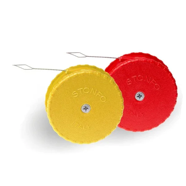 Trenza suave de acero inoxidable para facilitar el paso del elástico dentro de la punta. Después de su uso, la trenza se rebobina en su práctico embalaje de carrete. Hay dos tamaños disponibles para bandas elásticas de diámetro pequeño y grande.