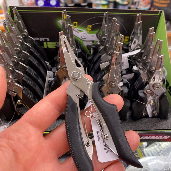 Alicate Inoxidable Anticorrosión con punta especial y función abre-anillas para el cambio de señuelos y anzuelos, con hoja de corte de alta precisión.