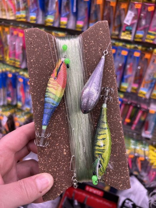 Aparejo montado listo para la pesca del calamar desde embarcación.