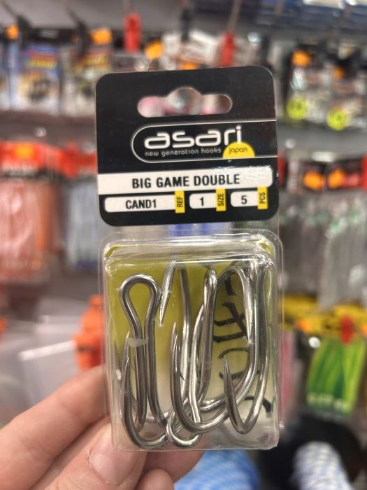Caja de anzuelos dobles ASARI BIG GAME DOUBLE Nº1 . Contiene 5 unidades.