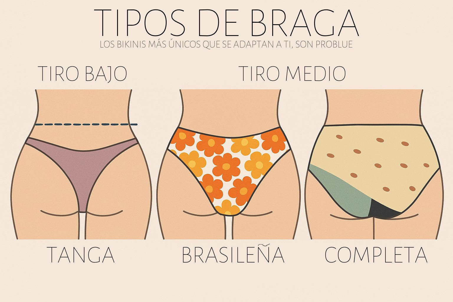 También puedes elegir braga completa, brasileña o tanganazo y tiro medio o bajo.