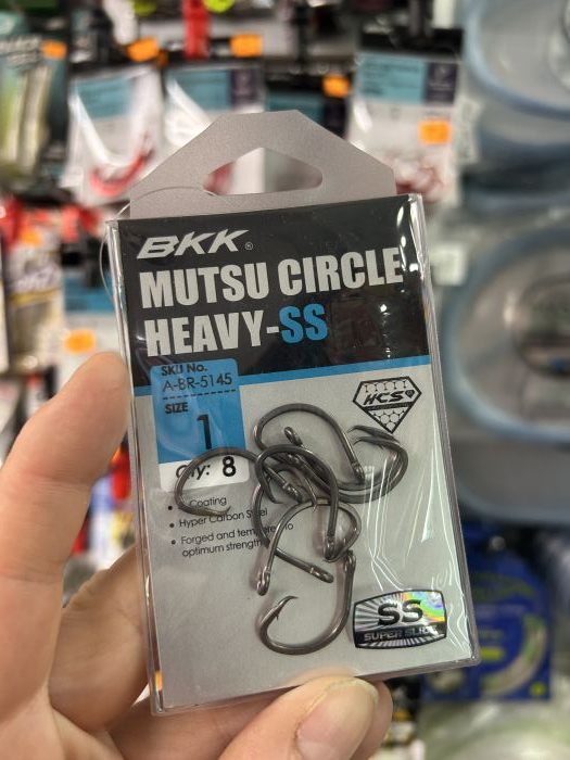 Paquete anzuelos con anilla modelo BKK MUTSU CIRCLE HEAVY-SS . Tamaño 1 . Cantidad 8 unidades.