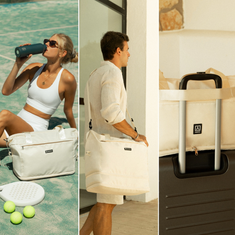 Diseñada para viajar con cinta de agarre para maletas y bolsillos de acceso rápido