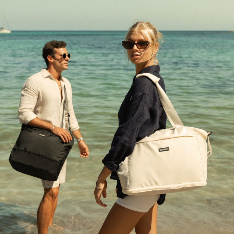 Diseñada para viajar con cinta de agarre para maletas y bolsillos de acceso rápido