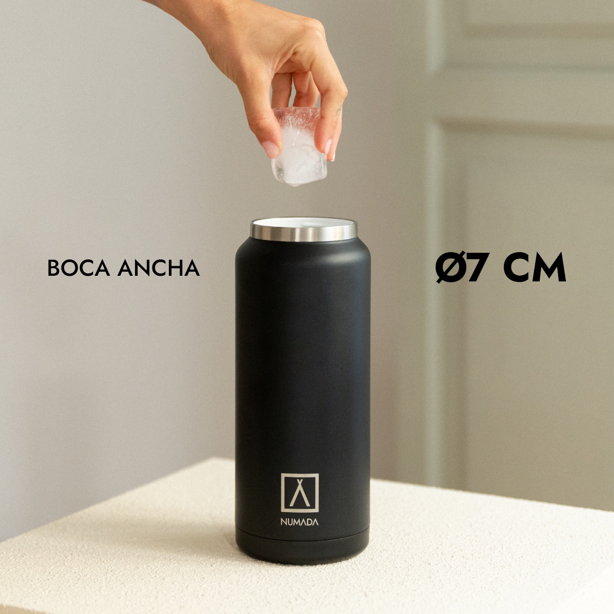 La botella agua acero inoxidable cuenta con una abertura de boca ancha con 7 cm interior para poder insertar hielos y ofrecer una mayor comodidad al beber.