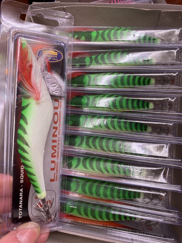 Caja de 10 peces para calamar de tamaño 4.0 y color Verde. Estos peces son la gama más económica que encontrarás y funcionan a la perfección. Teniendo en cuenta las limitaciones de calidad de estos peces, te podemos contar que se venden de maravilla y que podrás usar en momentos con mucha corriente, viento y otras inclemencias para no perder los buenos. Además, es buena táctica usar de primeras este tipo de peces hasta que consigues coger experiencia en el eging.