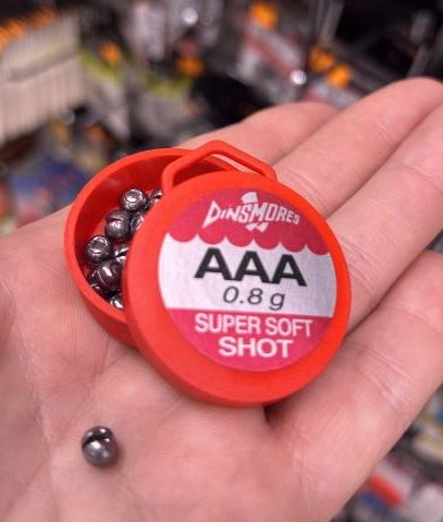 Cajita de plomos blandos DINSMORE AAA 0,8 gramos. Aproximadamente 30 plomitos. Super Soft Shot.