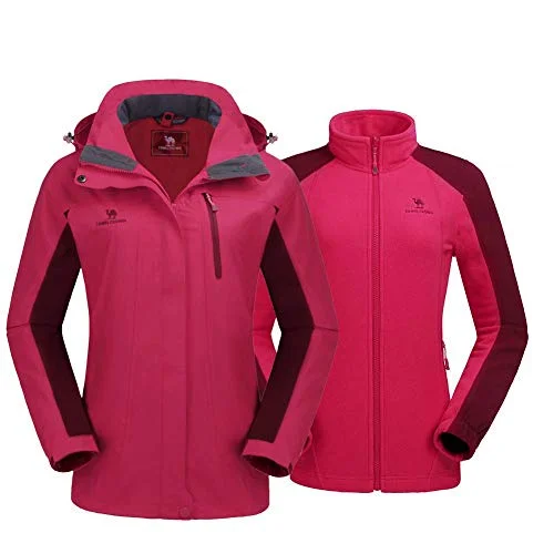 CAMEL CROWN Chaqueta Impermeable con Capucha para mujer A Prueba de Viento Chaqueta de Esquí con Forro Polar, Jacket Invierno para Montaña Cámping Viajes Snowboard Deportes (Rojo, S (ES))
