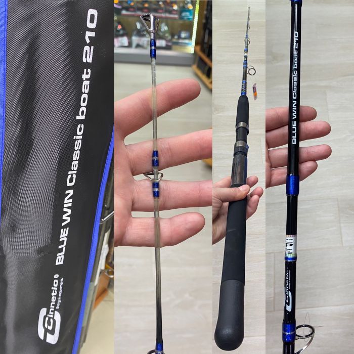 Caña Cinnetic para embarcación modelo BLUE WIN CLASSIC BOAT 210 con acción 5 – 25 libras. Fabricada en carbono de 24 Tons esta especialmente indicada para embarcación y pesca en vertical.