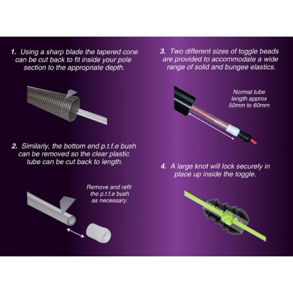 Este dispositivo inteligente permite al pescador ajustar la cantidad de elástico que un pez puede tomar del extremo base de un kit superior. Utilizado con sensatez, puede permitir a un pescador usar efectivamente un grado más ligero de elástico de caña y aún así tener el control de peces grandes y pequeños.