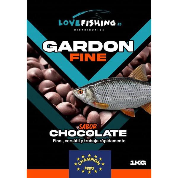GARDON Textura fina SABOR CHOCOLATE,muy polivalente con cualquier engodo Es uno de los 3 modelos de la Nueva gama de engodos fabricados especialmente para la pesca en la Peninsula . Hecho de la base de harinas y semillas de maxima calidad de las manos de pescadores profesionales y en una de las mejores fabricas del mundo de engodos – Champion Feed .