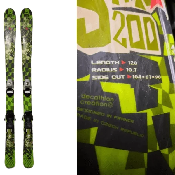 Esquíes Verde de nieve en buen estado, ideales para niños.