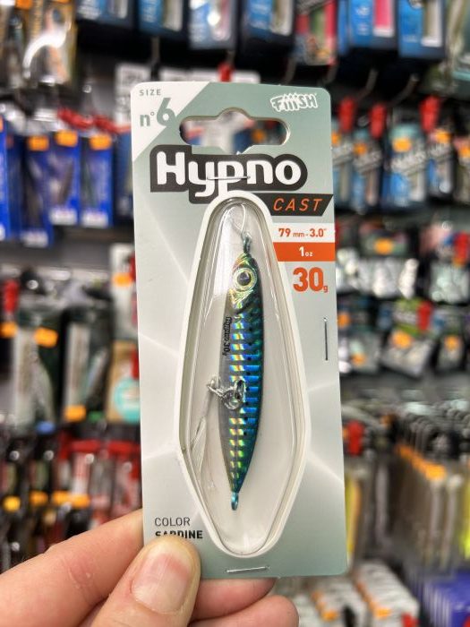Jig de la marca FIIISH modelo HYPNO CAST en 30 gramos. Color Azul Sardine. Tamaño 79mm . Equipado con anzuelo WMC reforzado 20 libras.