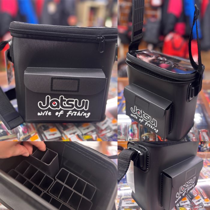Macuto porta-señuelos modelo JATSUI EVA BAG 24 LURES. Ideal para spinning y para señuelos de largas dimensiones hasta 20cm al ras. Podrás meter hasta 24 señuelos , en 6 modulos sueltos (de 4 huecos) que puedes mover y sacar a tu gusto. Dispone de bolso exterior con cierre velcro. Y asa de transporte.