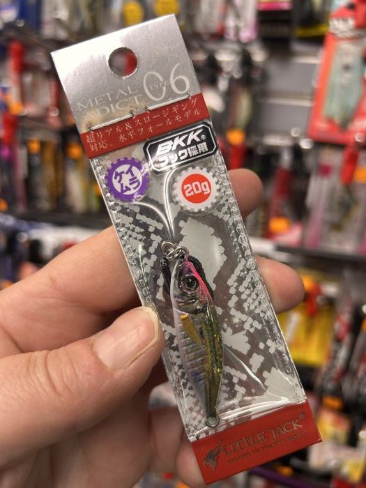 Jig METAL ADICT 06 de LITTLE JACK de 20 gramos en color 10. Jig totalmente realista con forma de pez provisto de 2 anzuelos en assits. Especial para la pesca de chicharros, verdeles y peces de roca mediante la pesca del rockfishing o del Ajing