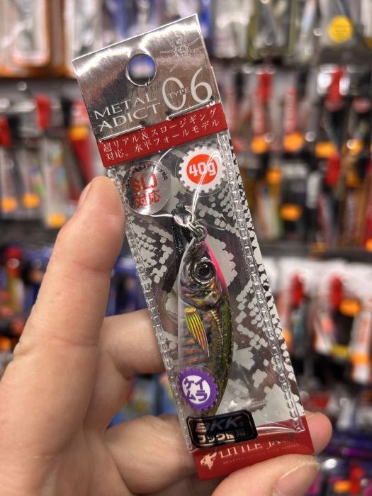 Jig METAL ADICT 06 de LITTLE JACK de 40 gramos. Jig totalmente realista con forma de pez provisto de 2 anzuelos en assits. Especial para la pesca de chicharros, verdeles y peces de roca mediante la pesca del rockfishing o del Ajing