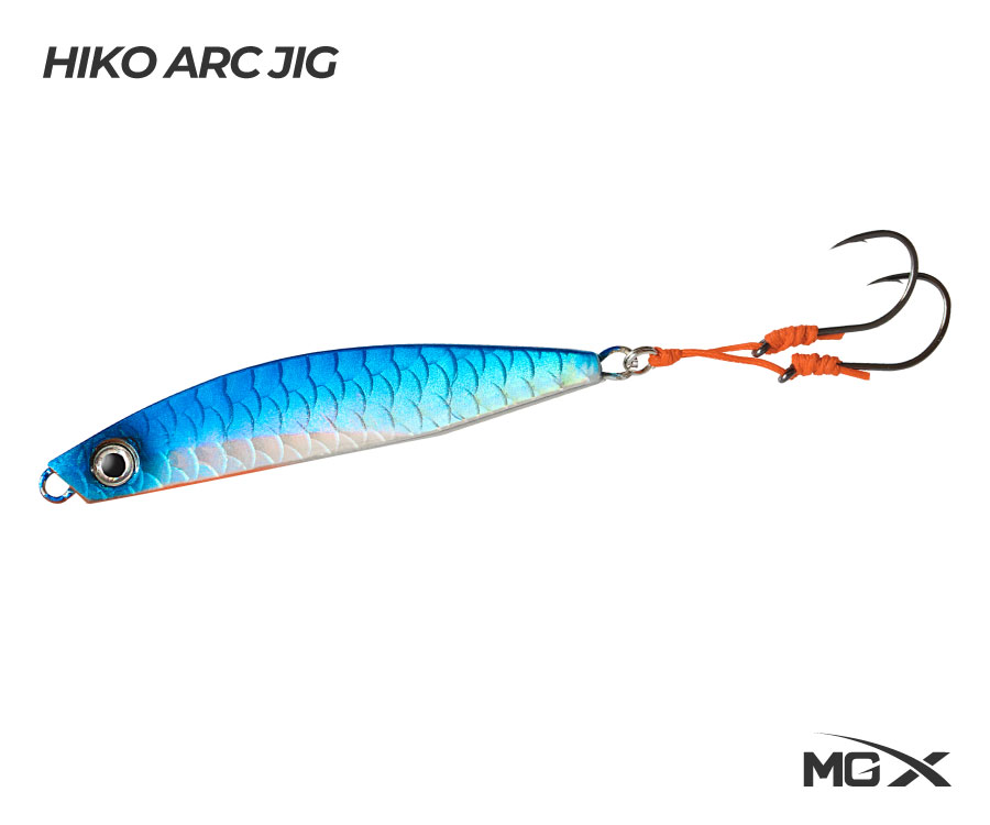 El Jig MGX Hiko ARC es una variación del ya conocido MGX HIKO, en este nuevo diseño cuenta con una pequeña curvatura que le brinda un nado mucho más errático permitiendo explotar el brillo de sus hologramas.