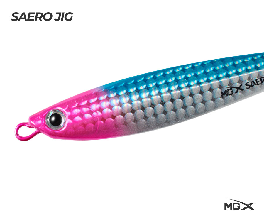 El Jig MGX Saero es un señuelo para la pesca de corvinas y róbalos, su cuerpo recto y delgado permite un casteo promedio de 75m a 95m, los cuales sumados a sus atractivos hologramas e intensos colores lo convierten en toda un arma cazadora de predadores.