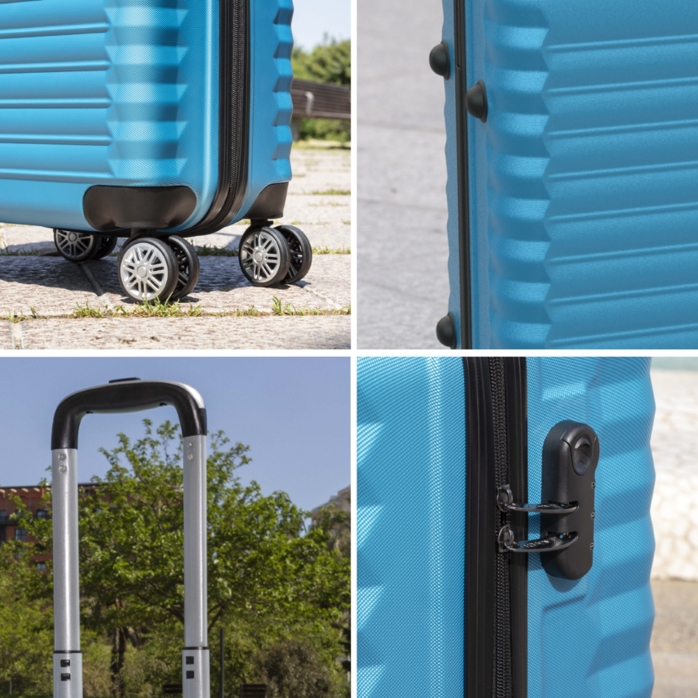 El juego de maletas está fabricado con ABS reciclado en un 60%. Estamos comprometidos con el planeta, por ello buscamos reducir el impacto ambiental con materiales más sostenibles.