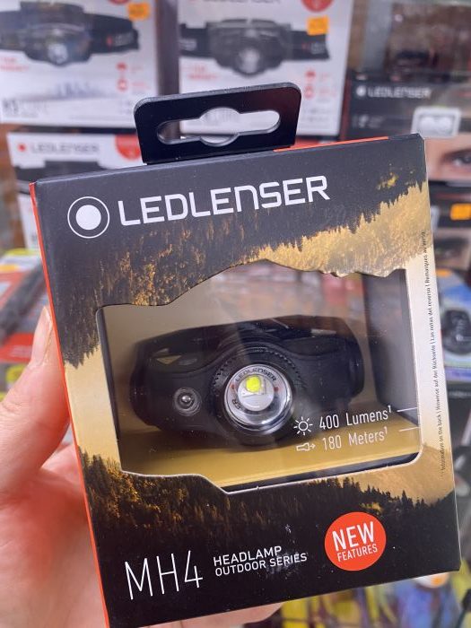 Linterna Frontal LEDLENSER MH4 recargable con 400 lumens. Para salir de pesca o de caza. Es una linterna compacta. La bateria suministrada se puede recargar comodamente con el sistema de carga magnética. Como alternativa también es posible el funcionamiento con pilas desechables de tipo AA. Gracias al cabezal extraíble de la linterna puedes transformar facilmente tu MH4 de frontal a manual.