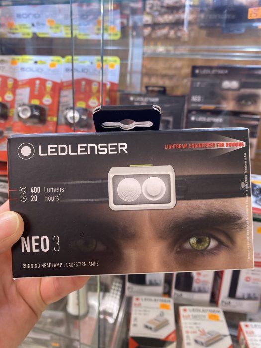 Linterna Frontal LEDLENSER NEO 3 , especial novedad por su pequeño tamaño con potencia máxima de 400 lumens durante 20 horas. Es una linterna de alta calidad perfecta para cualquier deporte .Dispone de una banda frontal elegante con elementos reflectantes y una luz trasera de seguridad en rojo. En el cabezal que es giratorio y orientable, tiene 2 luces separadas: luz de foco y reflector. Incluye indicador del estado de la bateria. Pilas incluídas .