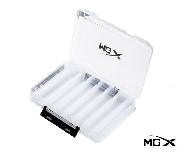Cajas señueleras de la marca MGX, construidas en plástico muy resistente que gracias a su forma interior de acordeón permite mantener un mínimo grosor para que entre gran cantidad de señuelos de tu colección. Tiene 7 divisiones por lado haciendo un total de 14 divisiones