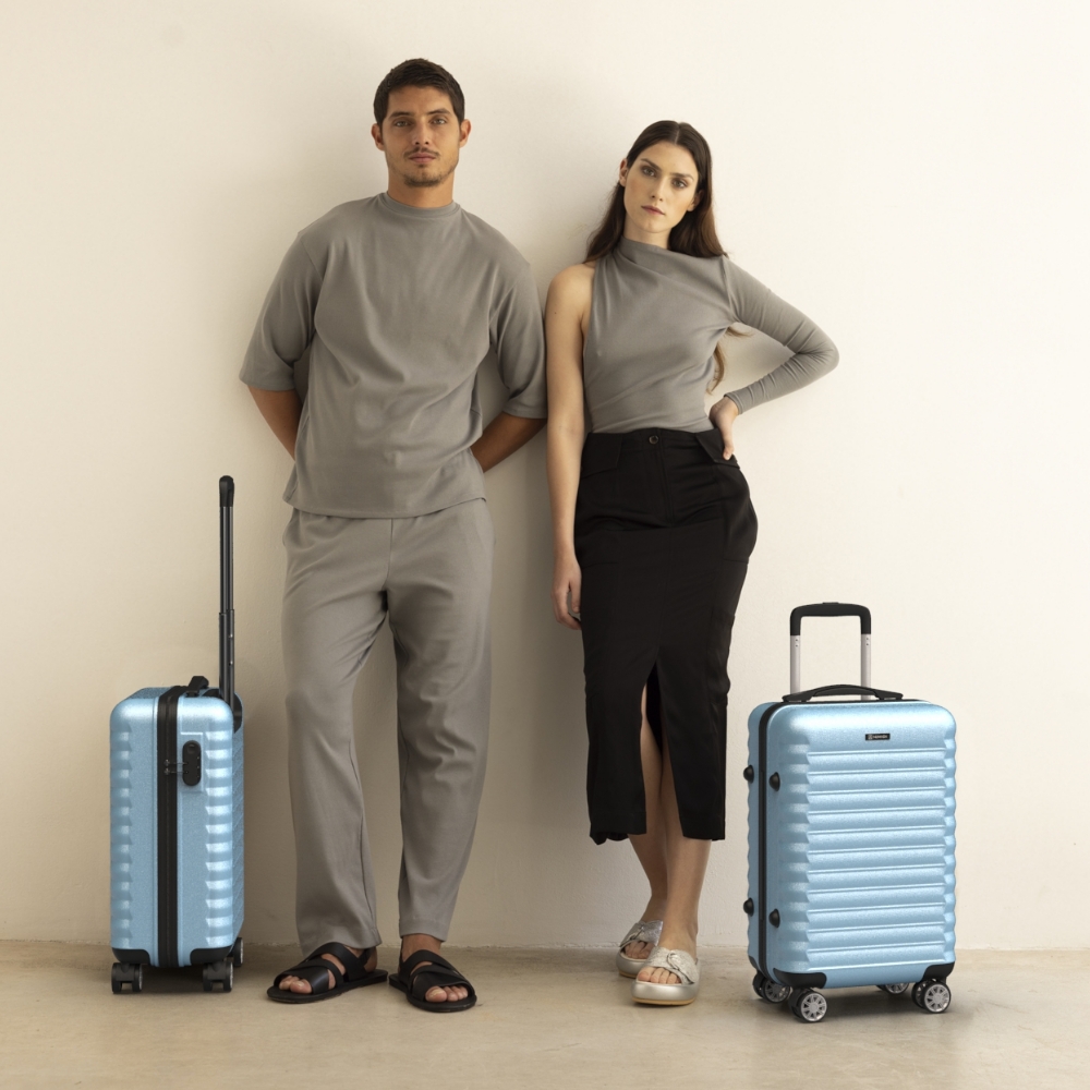 Las maletas están fabricadas con ABS reciclado en un 60%. Con el material obtenido de la maleta se ahorran hasta 12 botellas de plástico de 1,5 L.