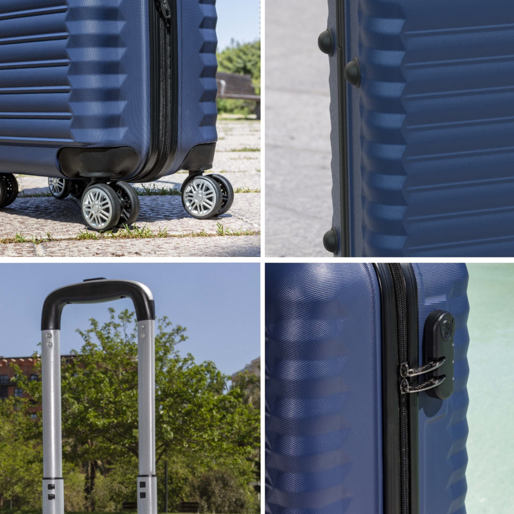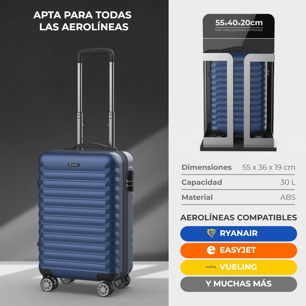 La maleta de cabina está disponible en color azul oscuro, azul claro, verde menta y negro. ¡Elige el tuyo!