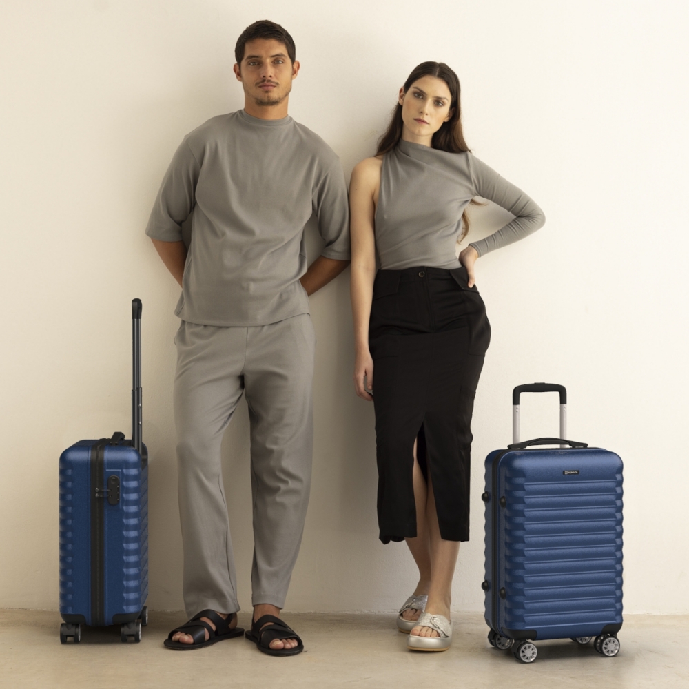 Las maletas están fabricadas con ABS reciclado en un 60%. Con el material obtenido de la maleta se ahorran hasta 12 botellas de plástico de 1,5 L.