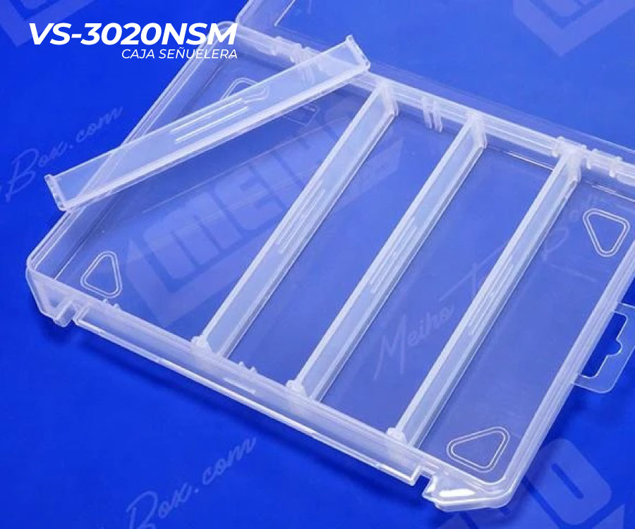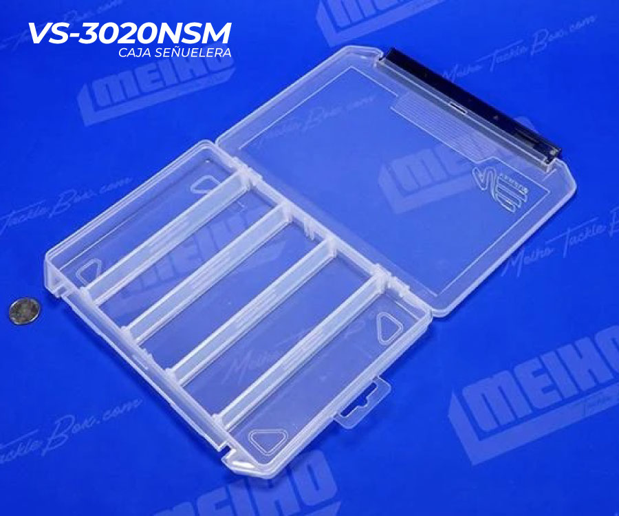 El MEIHO Versus VS-3020NSM es una caja señuelera personalizable y de alta calidad. Este estuche viene con 4 divisores de plástico extraíbles que se pueden colocar en diferentes ranuras para crear diferentes tamaños de compartimentos. El VS-3020NSM también tiene una tapa con bisagras y un fuerte cierre de pestillo que lo mantiene seguro durante el transporte.