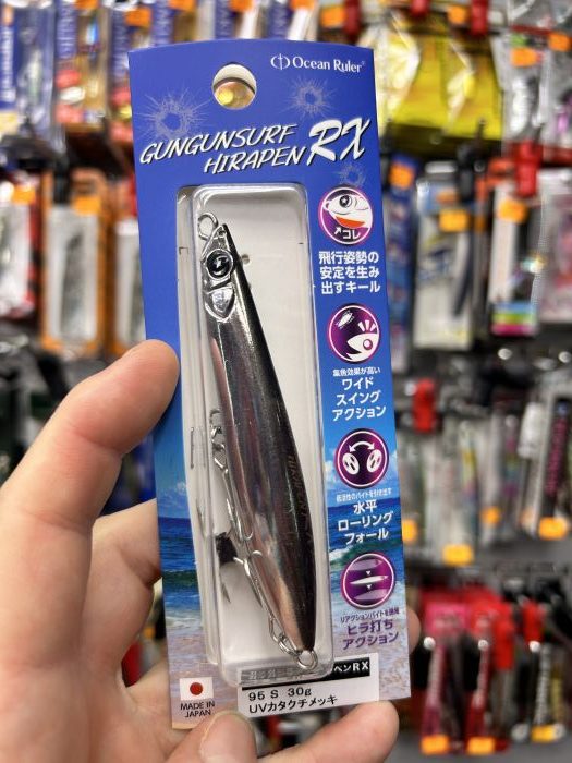Señuelo duro de OCEAN RULER modelo GUNGUNSURF HIRAPEN RX 95S y con 30 gramos. UV. Puro japonés.
