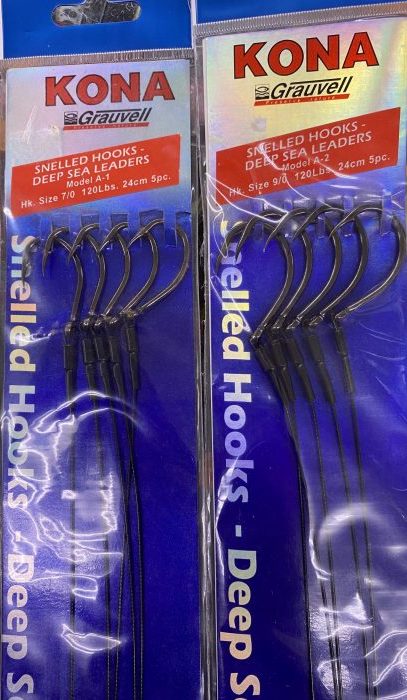 2. 1 paquete de 5 Bajos KONA GRAUVELL con acero con anzuelo talla 7/0 para 120 libras