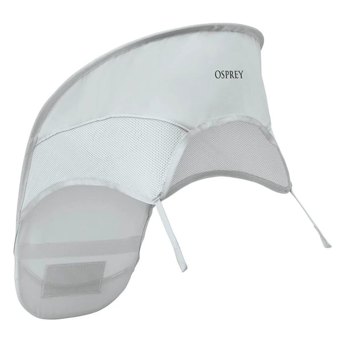 El parasol protege contra los dañinos rayos ultravioleta y contra el viento y la lluvia leves. Se guarda fácilmente en el bolsillo trasero del portabebés y se fija en su lugar con las dos hebillas ubicadas detrás del arnés principal.