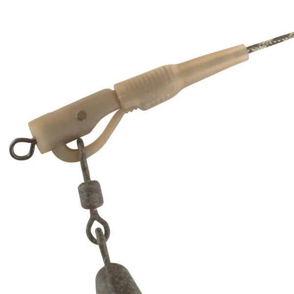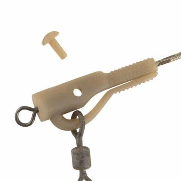 Fox Lead Clips cuenta con un diseño de clavija de barra en T que fija de forma segura el giro dentro del clip para la eyección de plomo sin problemas cuando se pesca en lugares con mala cuña o enganchados. Esto hace que el desembarque de los peces sea mucho más fácil en estas condiciones y si tiene la mala suerte de ser ‘cortado’ el pez no se deja atado al plomo.