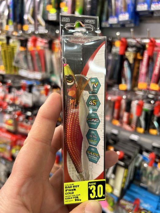 Señuelo BERKLEY EGI MASTER 3.0 con 15 gramos en color BAD BOY PINK GOLD. Lance aproximado 40 metros. Velocidad de bajada 3,5 metros/segundo. Rattle ., sonajero.