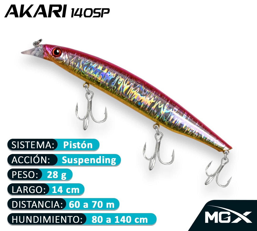 El MGX AKARI140SP combina diseño, tecnología y efectividad, convirtiéndose en una herramienta imprescindible para quienes buscan resultados en sus jornadas de pesca.