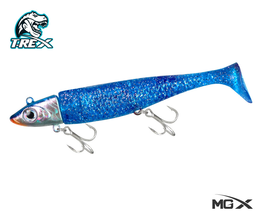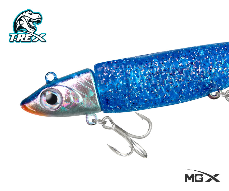 El MGX® T-Rex es un vinilo que combina durabilidad y diseño realista para atraer a los depredadores más esquivos. Su cuerpo está fabricado con vinilo de alta calidad, flexible pero resistente, que simula perfectamente la textura y el movimiento de una presa natural. Está equipado con dos anzuelos triples BKK® #6, que aseguran la captura de manera firme.